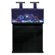 By designing the tank to be wider than it is tall they created a more balanced aspect ratio which greatly enhances the viewing experience, allowing easier and more natural aquascaping and coral placement.